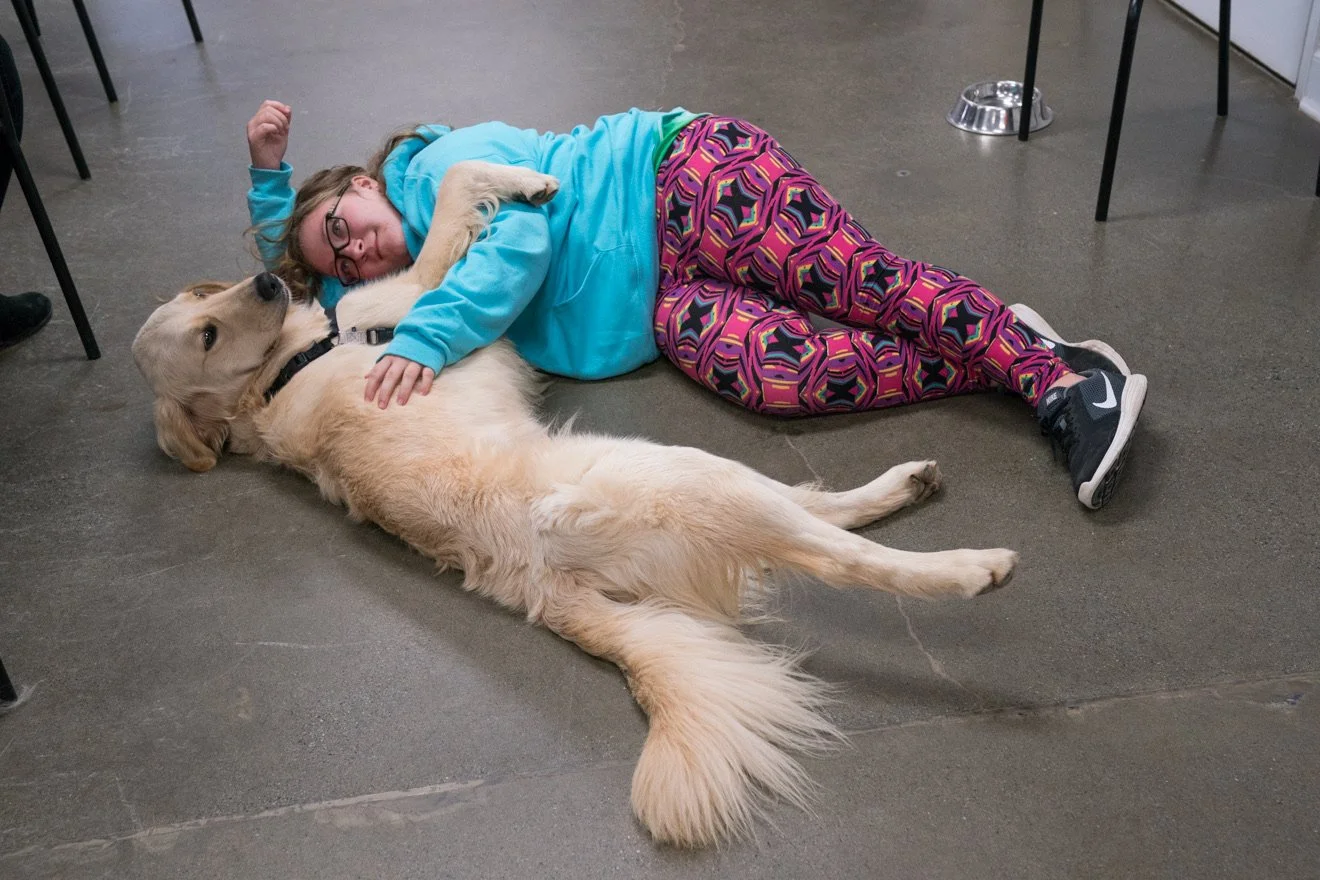 This exercise is used to teach your dog how to imitate your behavior. Have your arms represent their front paws and your legs represent their back legs. Demonstrate what you would like them to replicate (jumping, standing, spinning) and say “like me”. This can be the building block for endless teaching opportunities.